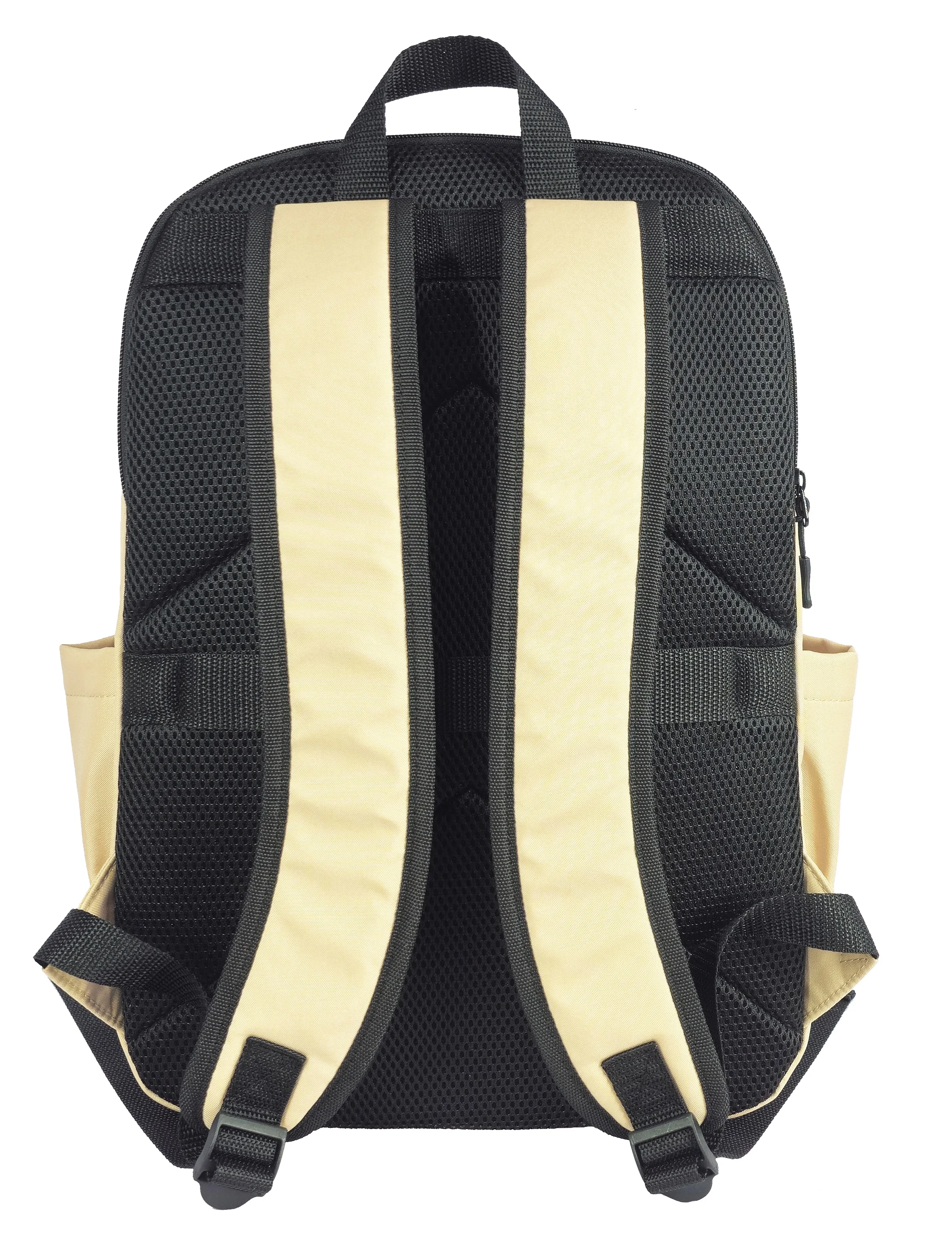 600D Yellow Backpack, Front Zipper Pockets & Webbing, Separate Laptop Compartment for Daily Use